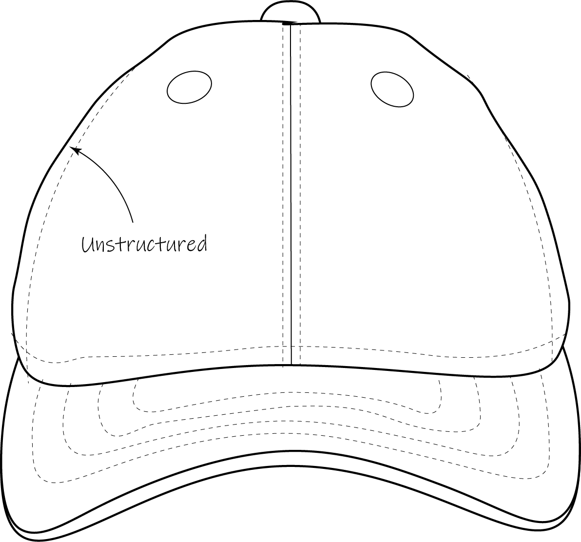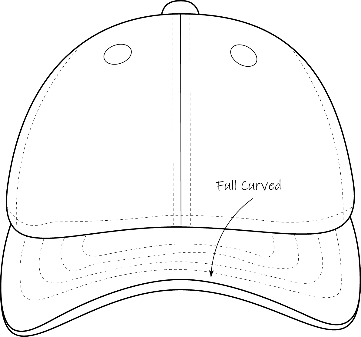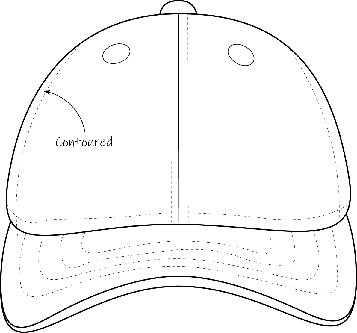 The crown is made of 6 panels: two front panels with the seam in the centre, two side panels, and two back panels. It gives a classic baseball cap style, and is suitable for sporty and casual wear.