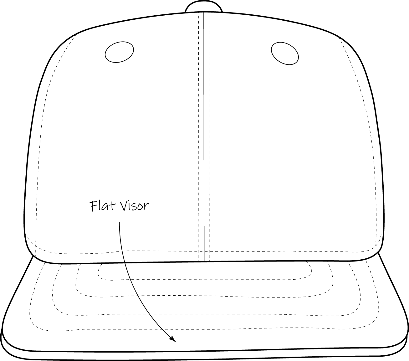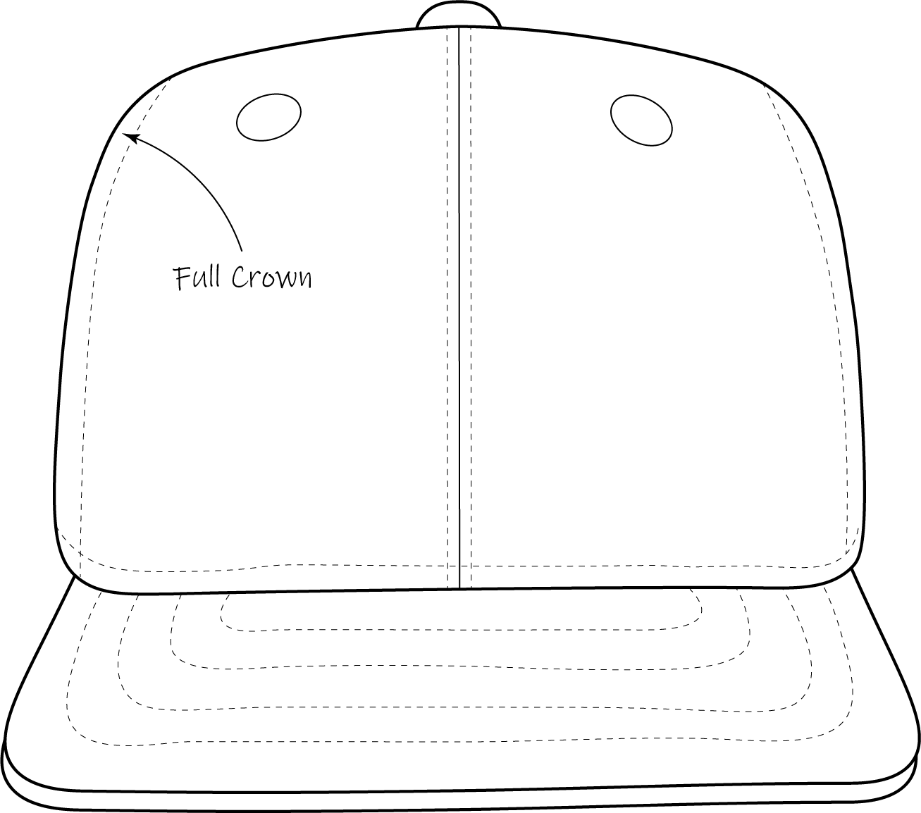 The crown is made of 5 panels: one large front panel, two side panels, and two back panels. It often associates with streetwear, or caps with large logos or graphics.